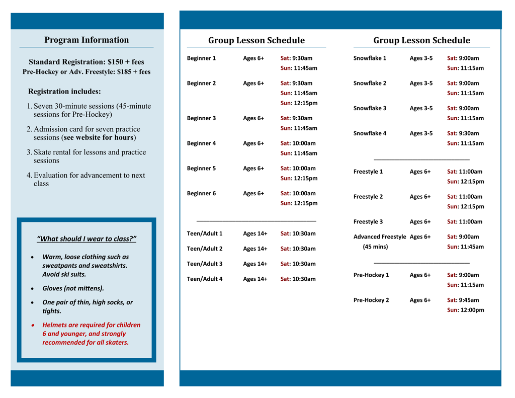 Helmets are required for children 6 years of age and younger and strongly recommended for all skaters.